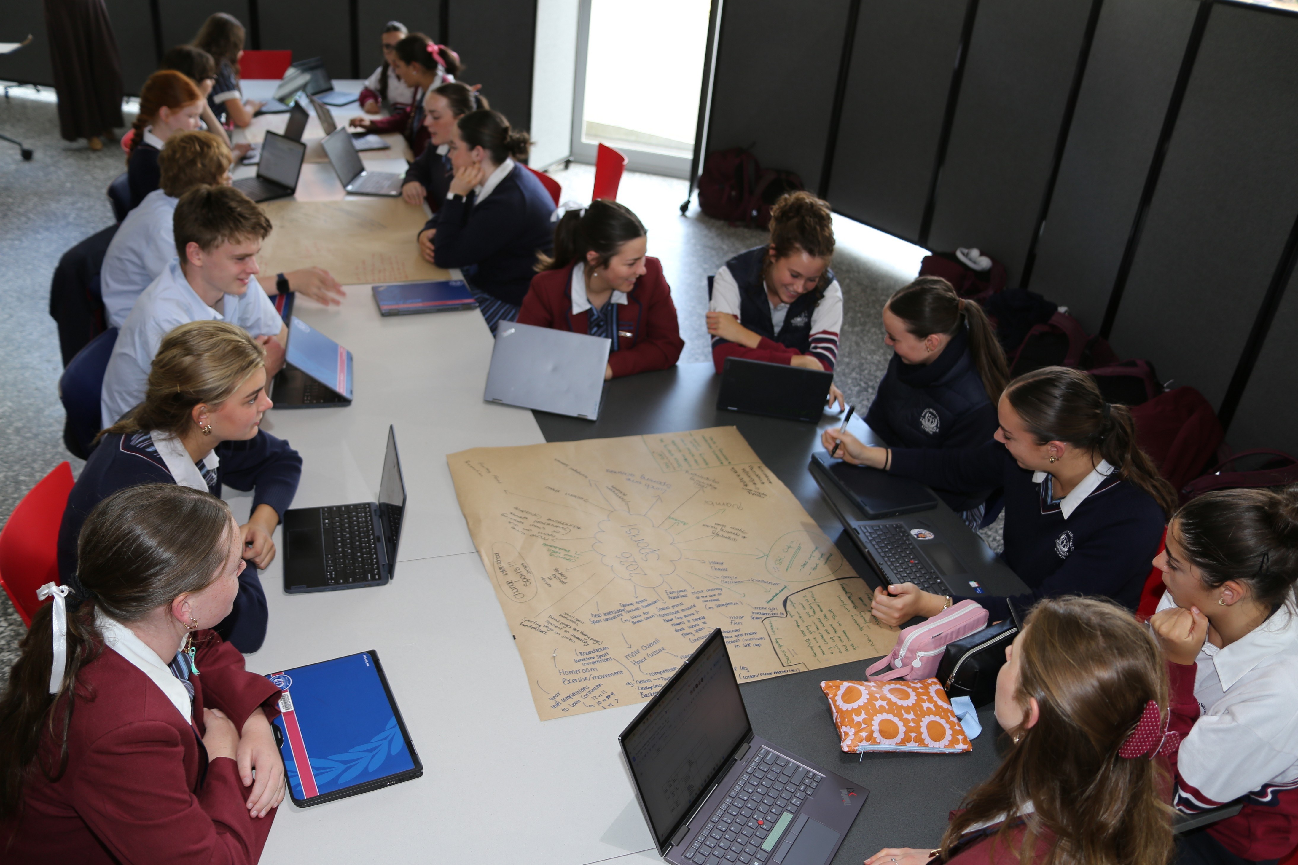 A key feature of the meeting was the collaboration between Senior and Junior Leaders. Our Senior Student Leaders worked alongside their junior counterparts, sharing ideas and offering guidance as they refined initiatives for their respective year levels and the wider College community. This mentoring approach supports the development of leadership skills, while strengthening connections across the Student Leadership Team.