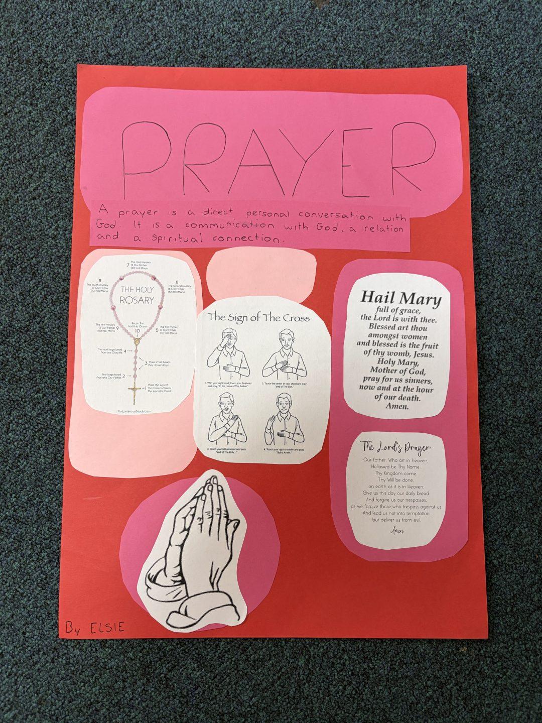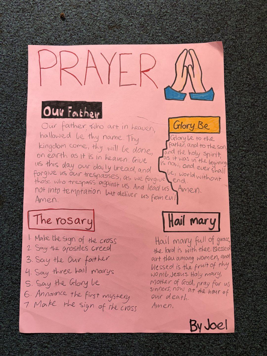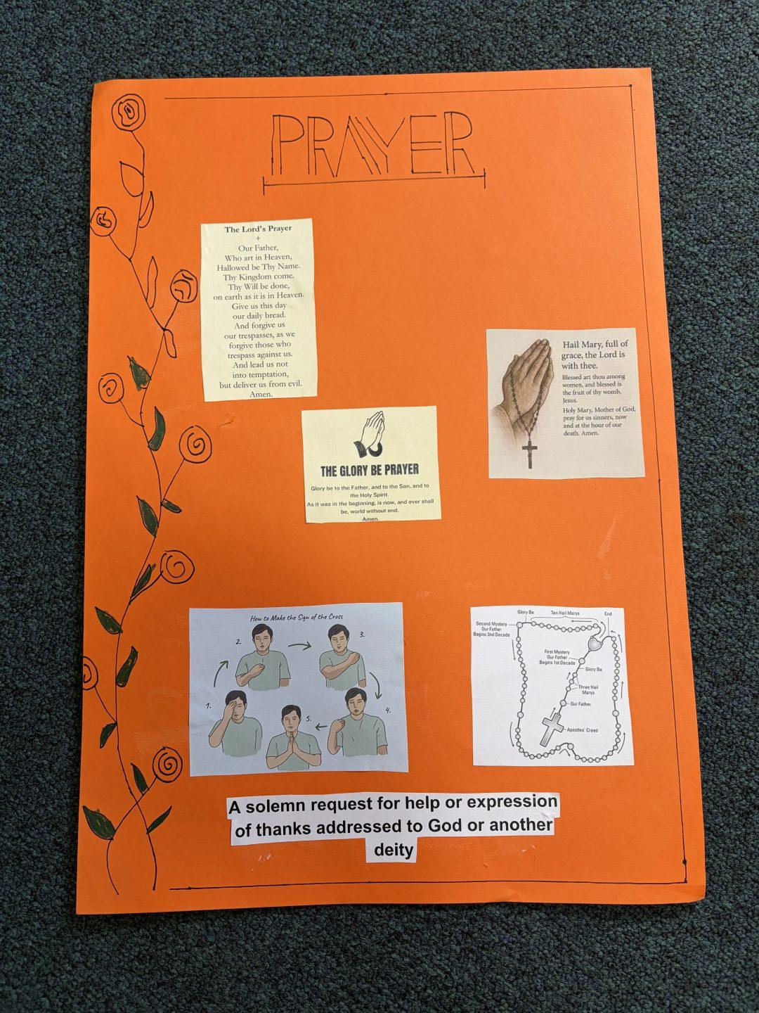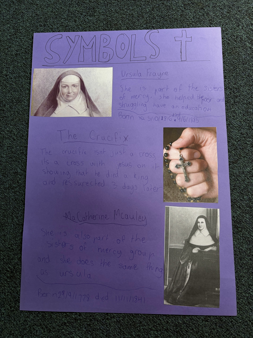 Many posters focused on the importance of prayer. Other students explored Catholic signs and symbols, explaining their meanings and significance whilst others highlighted how Catholic schools put faith into action by examining organisations such as Caritas and McCauley Services for Women. The creativity and insight shown in students’ work reflected a deepening understanding of what it means to belong to a Catholic community.