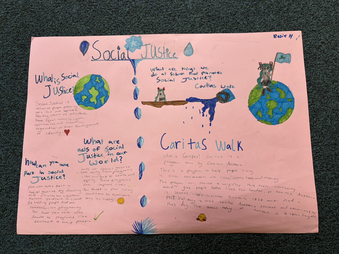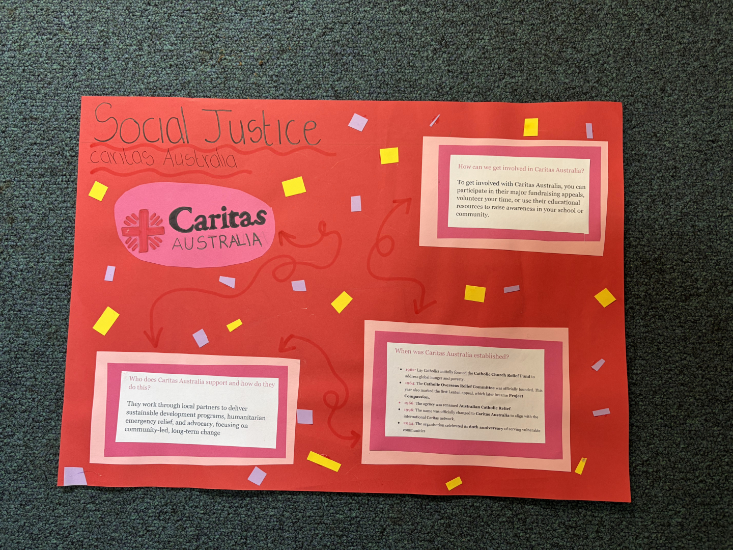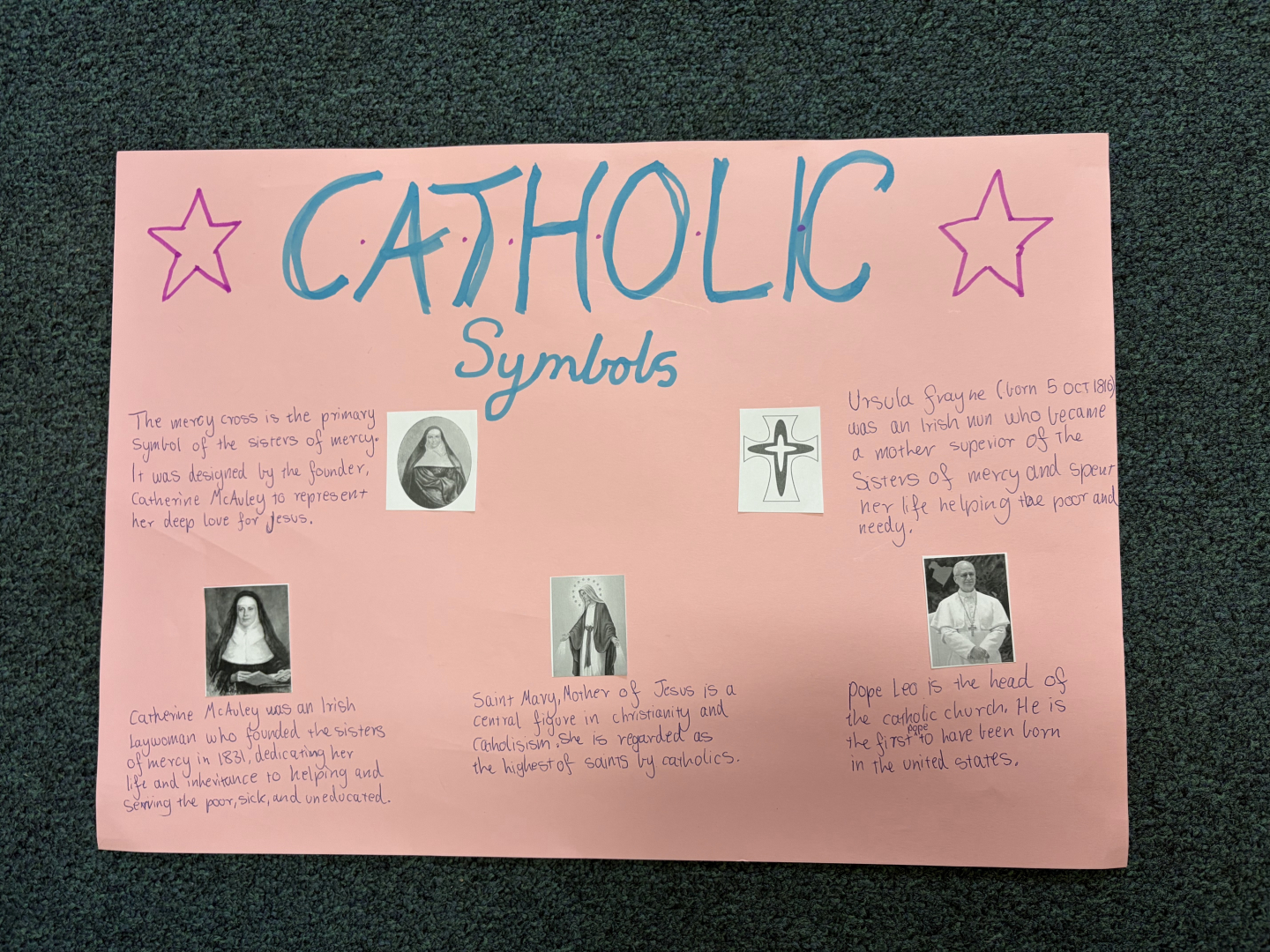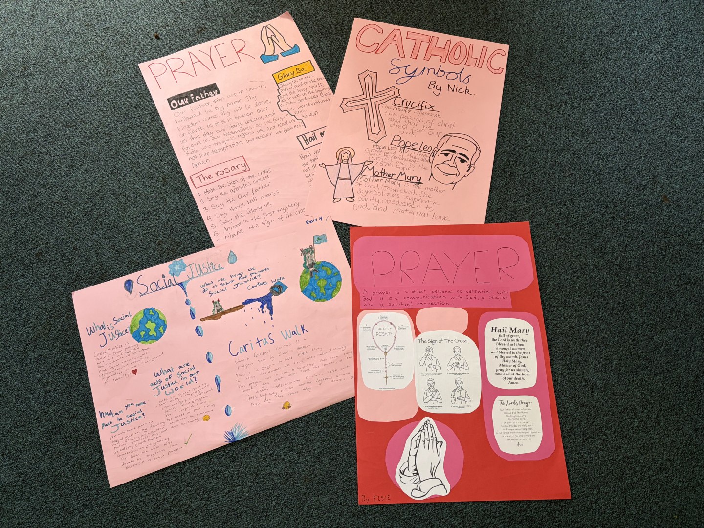 Many posters focused on the importance of prayer. Other students explored Catholic signs and symbols, explaining their meanings and significance whilst others highlighted how Catholic schools put faith into action by examining organisations such as Caritas and McCauley Services for Women. The creativity and insight shown in students’ work reflected a deepening understanding of what it means to belong to a Catholic community.